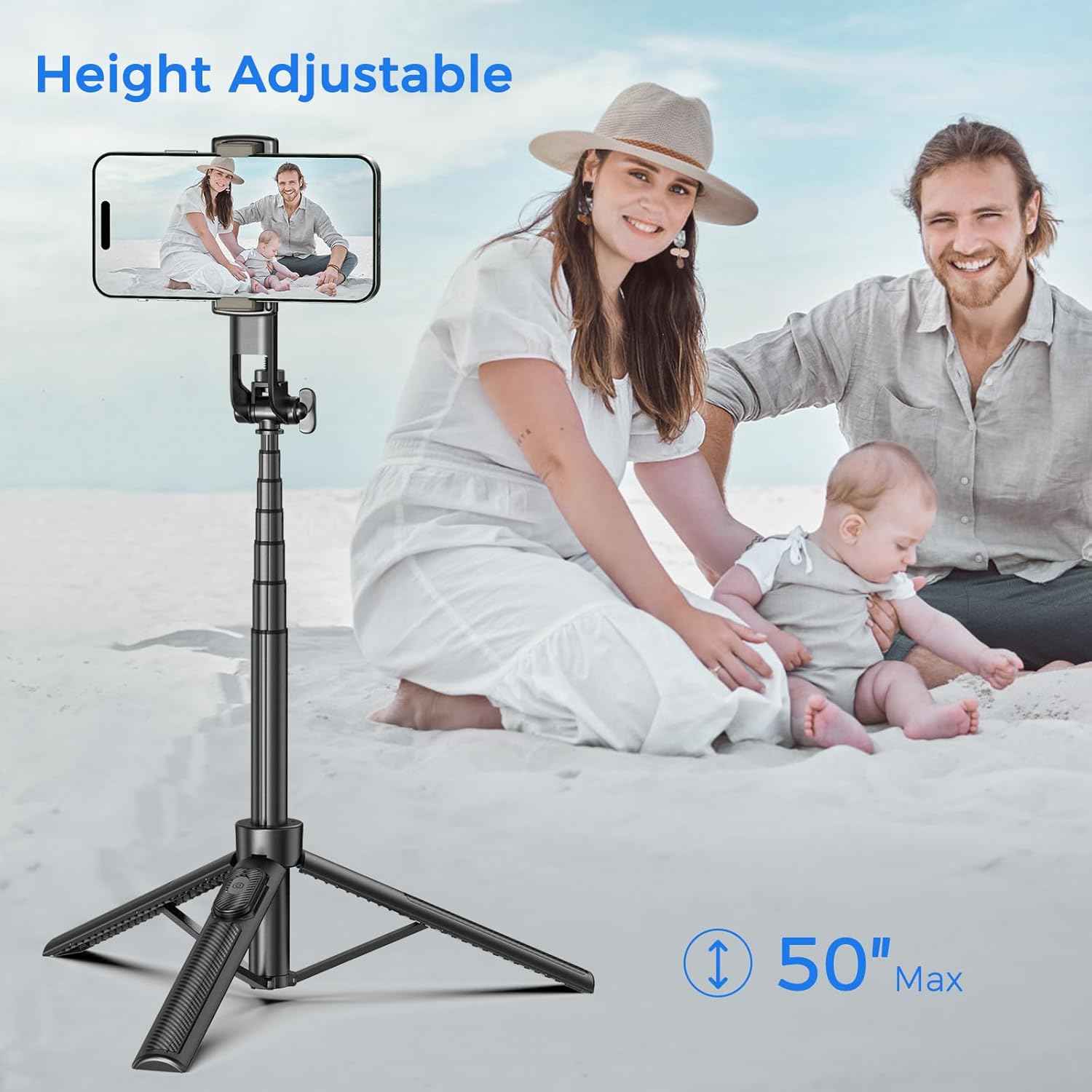 Selfie Stick Travel Tripod for Cell Phone with Remote Control and Phone Holder, Extendable Selfie Stick for iPhone, iPhone Tripod for Video Recording, 50 Inch, Black