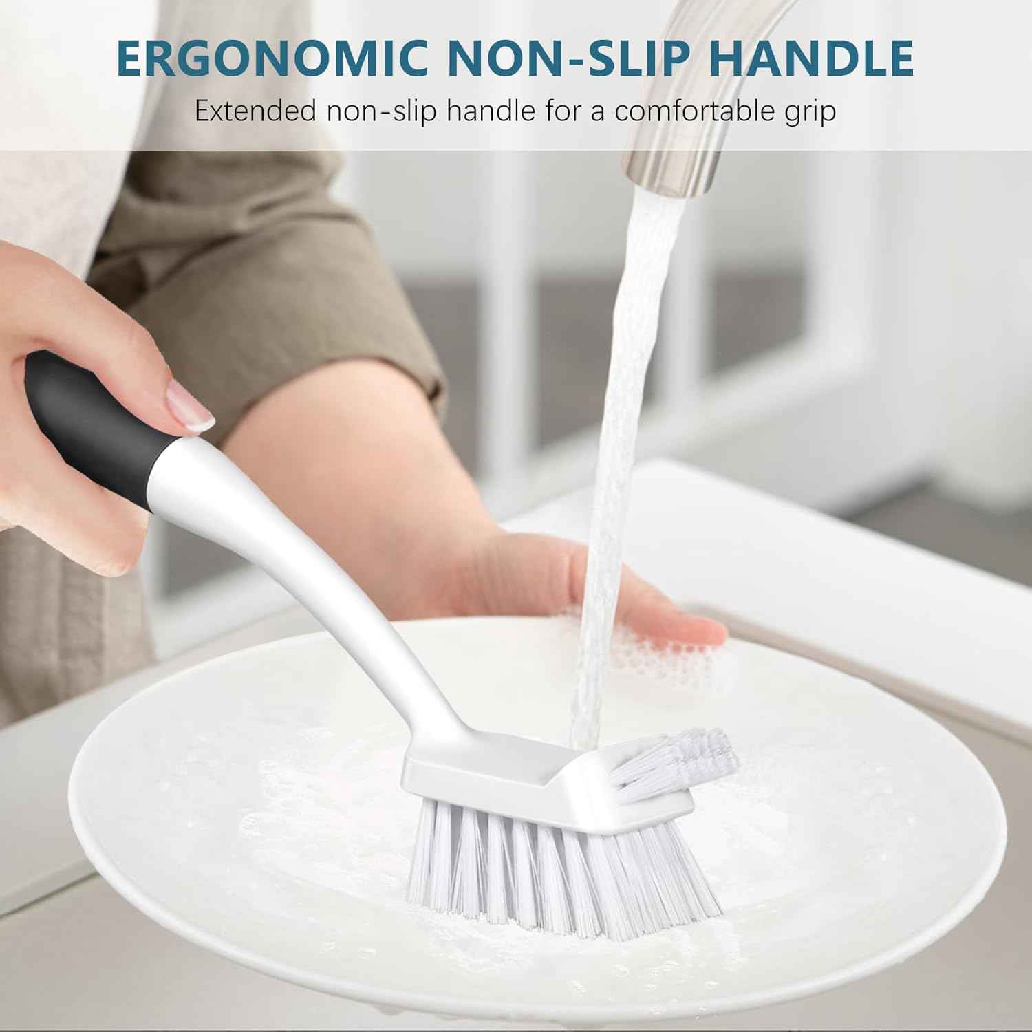 - SetSail Dish Brush Set of 3 with Bottle Brush, Dish Scrub Brush with Long Handle Deep Cleaning Handle Brush with Scraper Tip for Kitchen Sink Dishes Bottle Cup Pot and Pans Tile Lines, Black