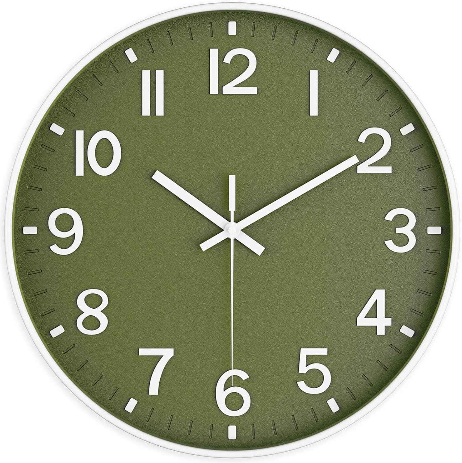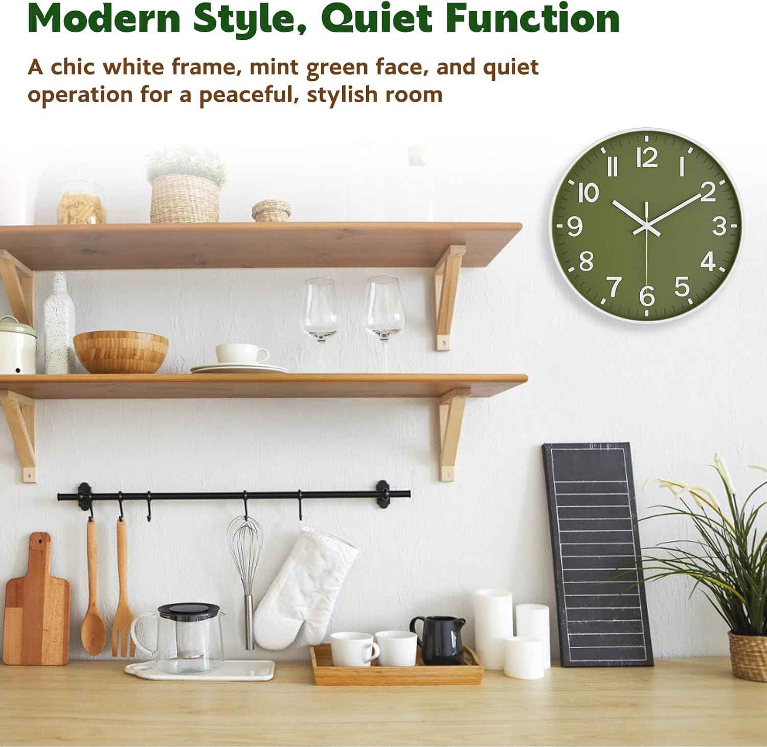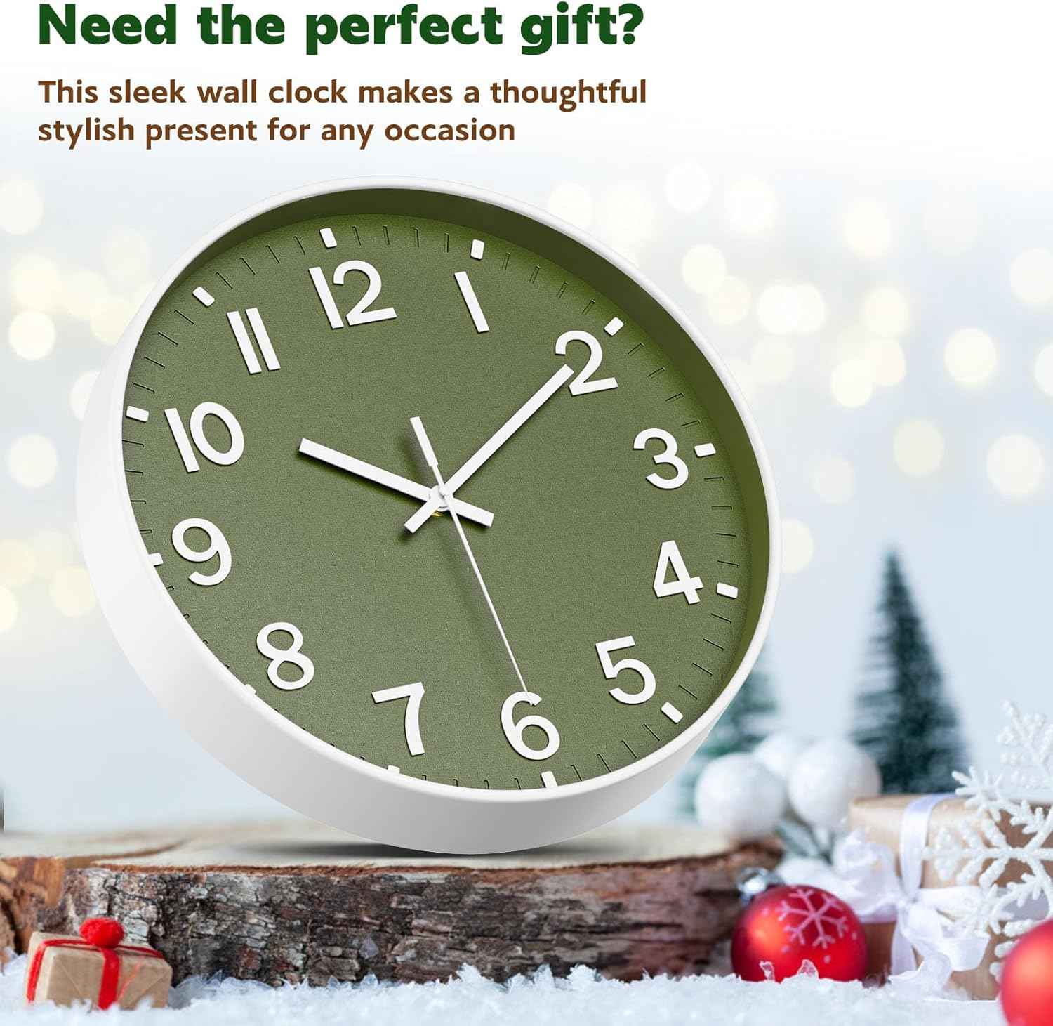 - Silent Wall Clock Non-Ticking Battery Operated – Modern Olive Green Analog Wall Clock for Living Room, Kitchen, Office, Bedroom – Stylish Home Wall Decor Clock, 8 Inch