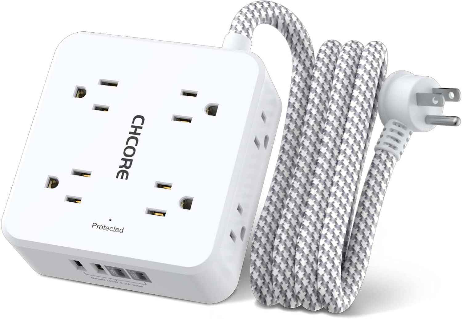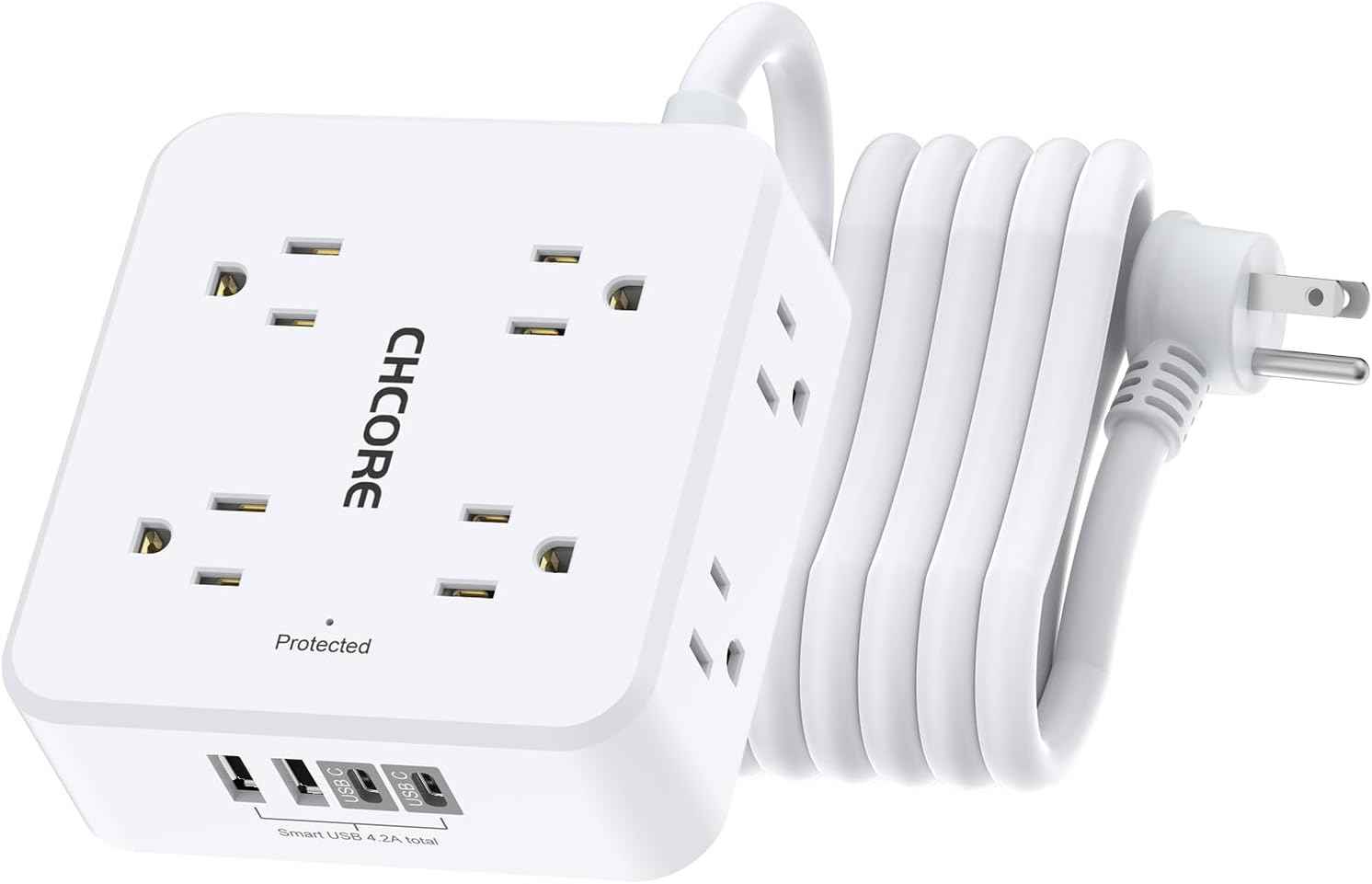 Specifications: Input Voltage: 125VAC; 60HZ; Max.Current: 10A; Max.Power Rating: 1250W; Surge Protector Rating: 900 Joules; USB Port Output: DC 5V, Total 4.2A; Cord Length: 5 Ft; Color: White; Item Dimensions: 4.04*4.29*1.65 in; Package list: 1 x Surge Protector Power Strip with usb Port. 1 x Instruction manual. 1 x Paper Box. Notice: Do not exceed the total rating or it may cause damage to the unit and fire hazards. NOTE: The UCB-C port doesn't support any other devices which need 14~22V charging voltage.