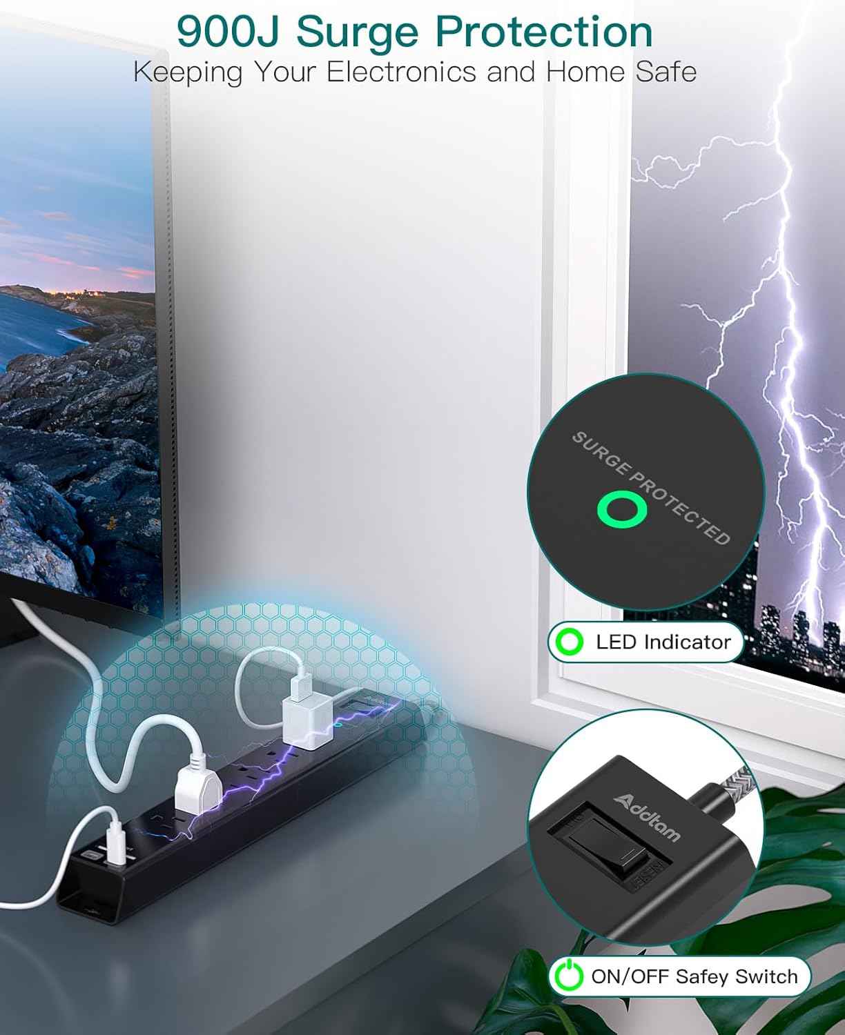 - Surge Protector Power Strip - Extension Cord with Addtam 6 AC Outlets 4 USB (2 USB-C Ports), 1875W/15A, Flat Plug with Overload Surge Protection, Outlet Extender for Home Office Dorm Room Essentials