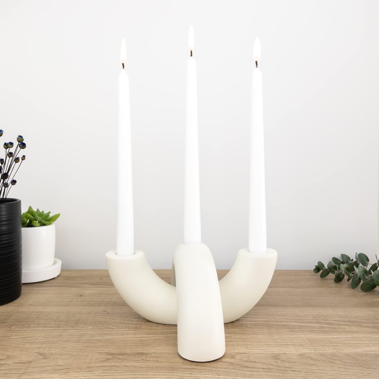 - Taper Candle Holder Set - Candle Stick Holders for Dining Room Table, Entryway Table, or Fireplace Mantel - Modern Candelabra Home Decor (White)