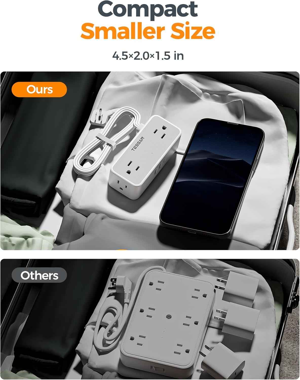 This small but versatile flat power strip have 4 widely outlets and 2 USB A , 1 USB C Ports, which is suitale for below scenes: