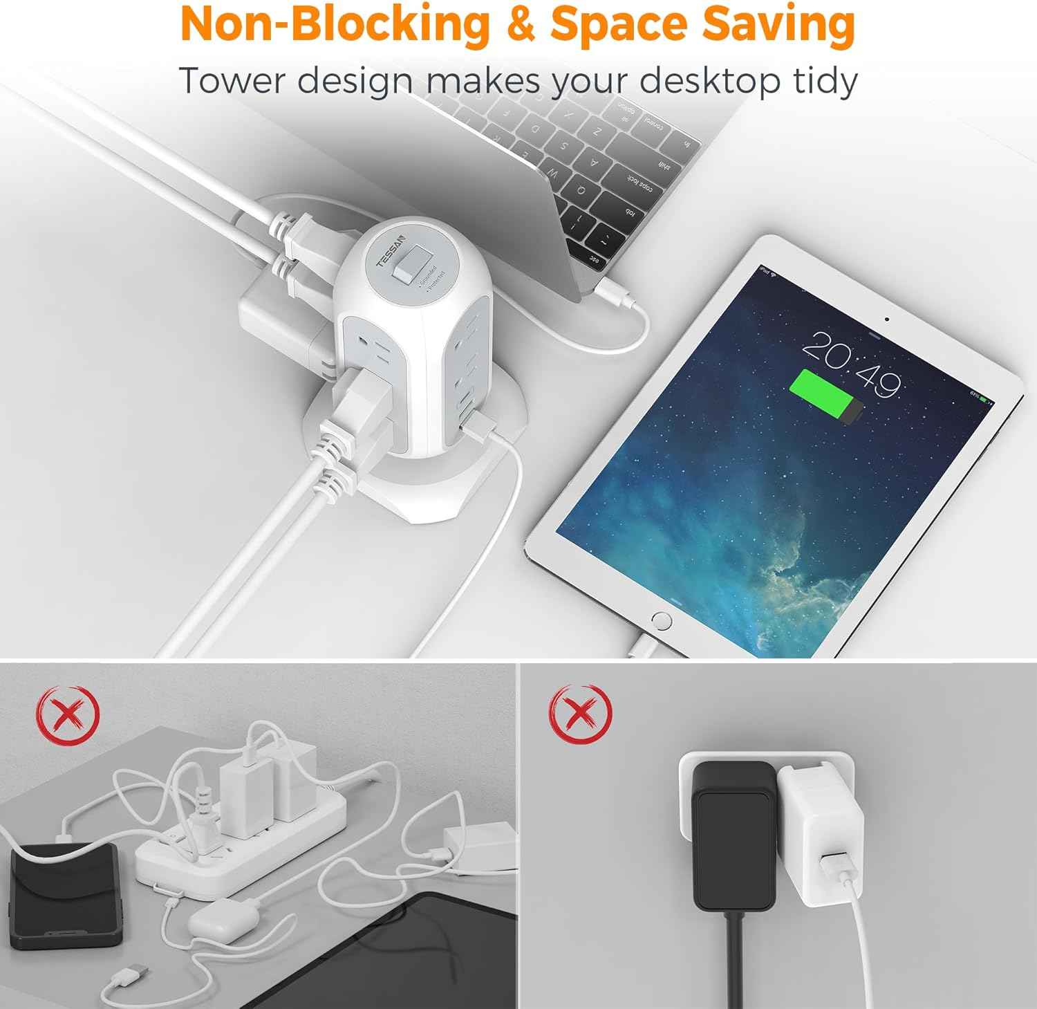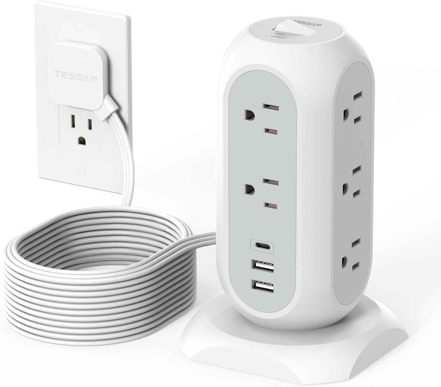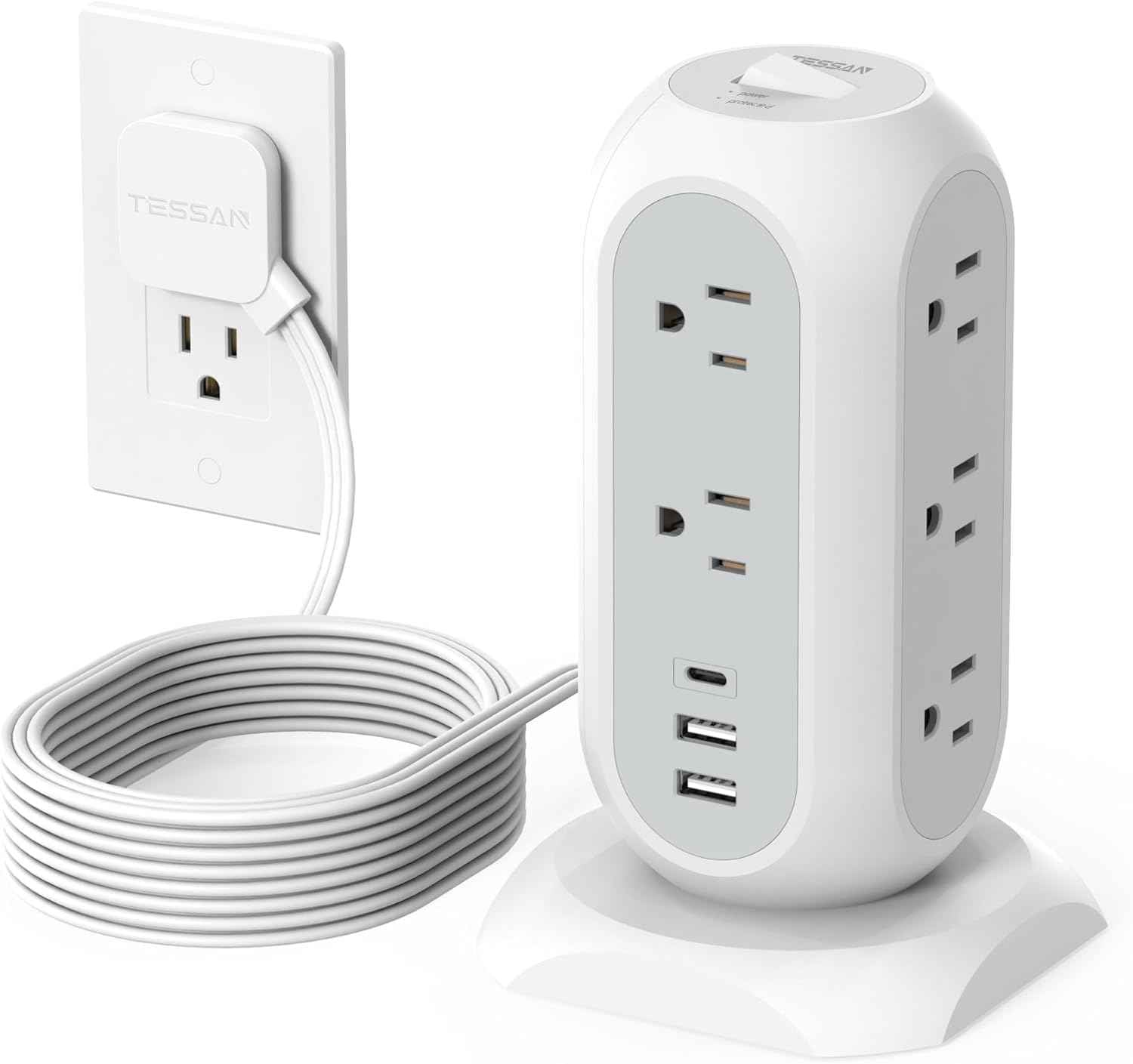 - Tower Power Strip Flat Plug with 11 Outlets 3 USB (1 USB C), TESSAN Surge Protector Tower 1625W/13A,1050J Protection, 6 Feet Extension Cord with Multiple Outlets, Office Desk Supplies, Dorm Essentials
