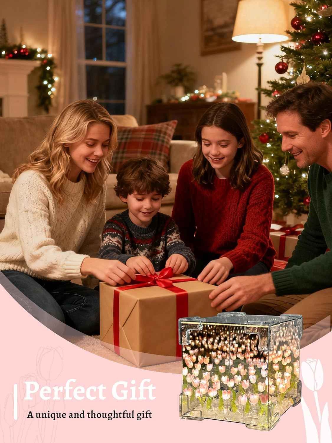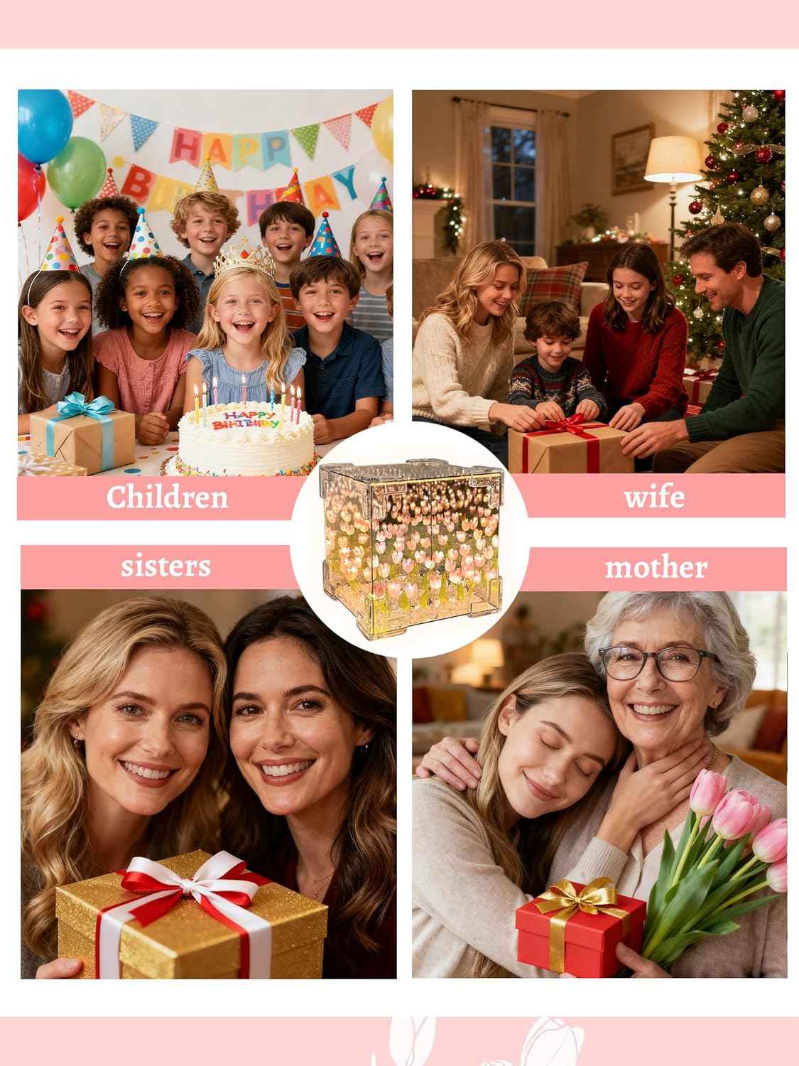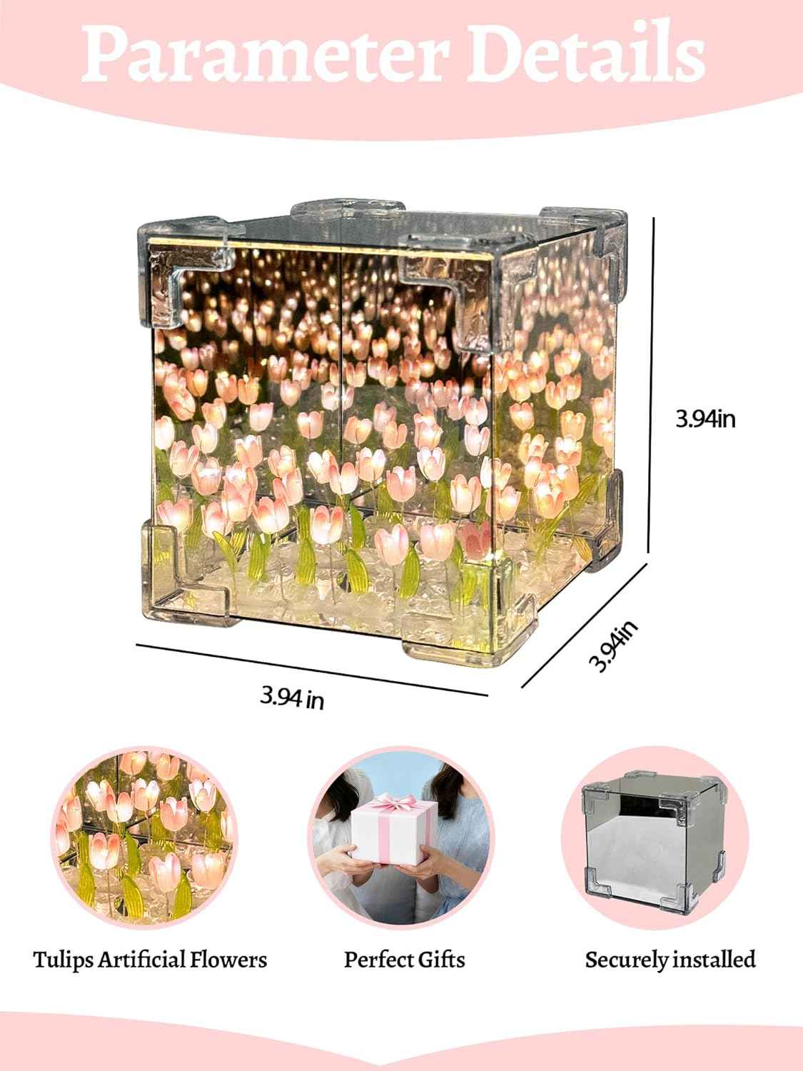 This exquisite Infinite Mirror Tulip nightlight is meticulously handmade through DIY crafting (no assembly required upon receipt)