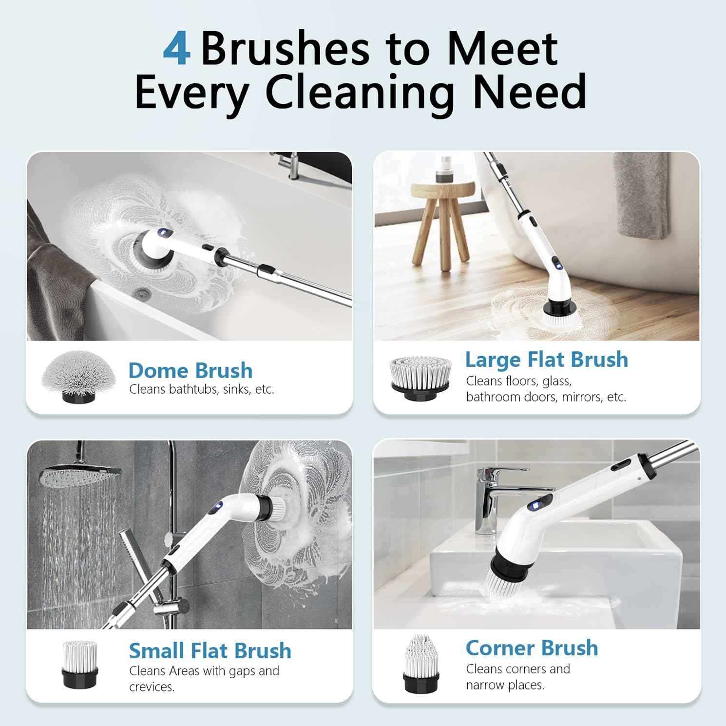 - TUYU Electric Spin Scrubber – Cordless Bathroom & Kitchen Cleaning Brush with LCD Display, IPX7 Waterproof, Adjustable Handle