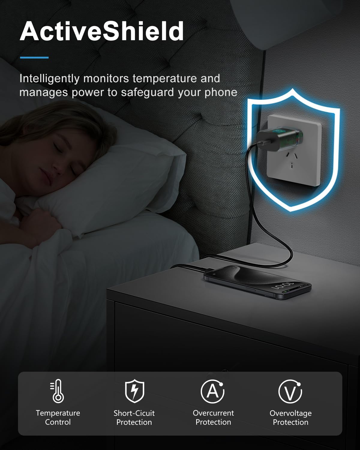 ● 25W HyperSpeed: Combines PD 3.0 + QC 4.0 tech to deliver 5x faster charging vs. standard 5W chargers.