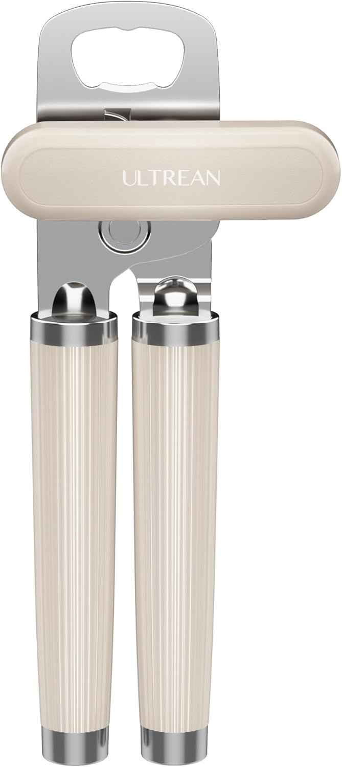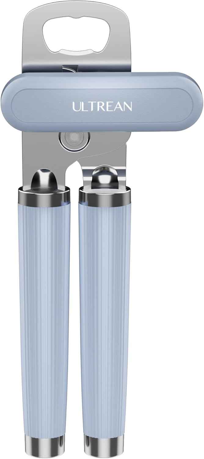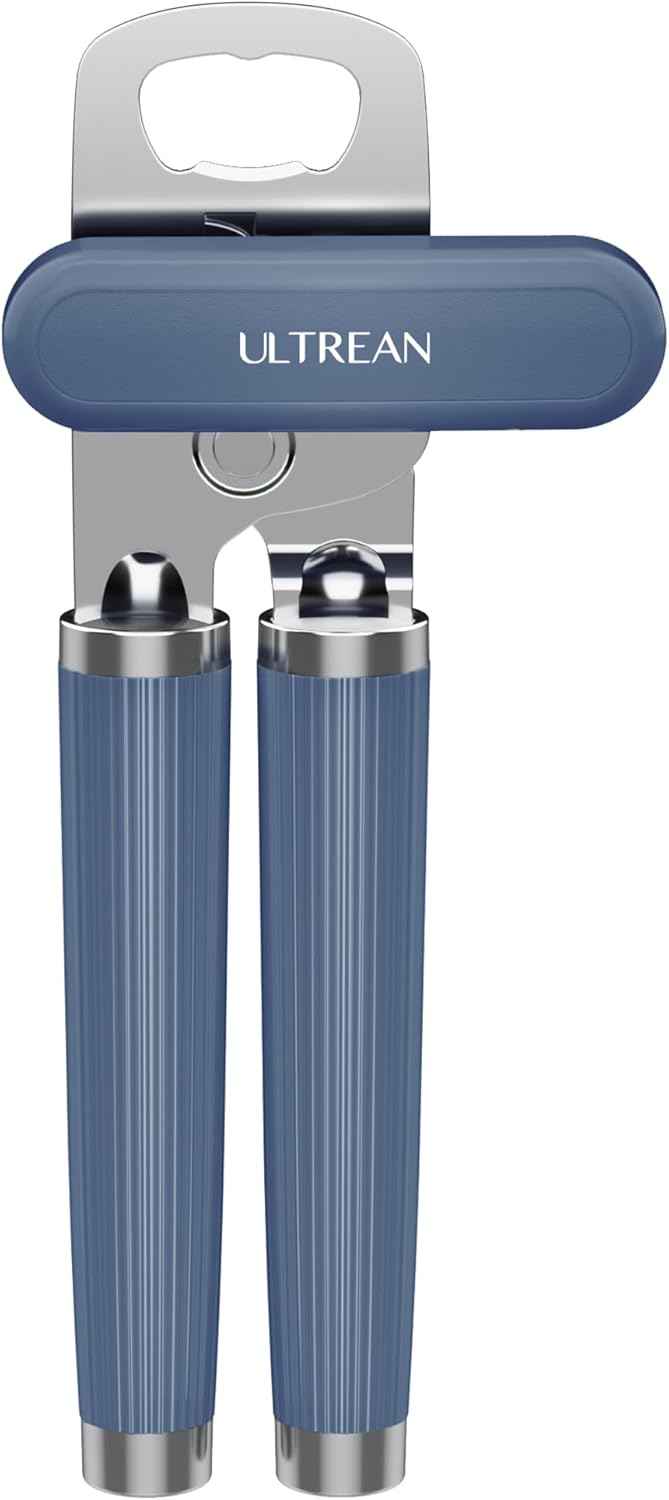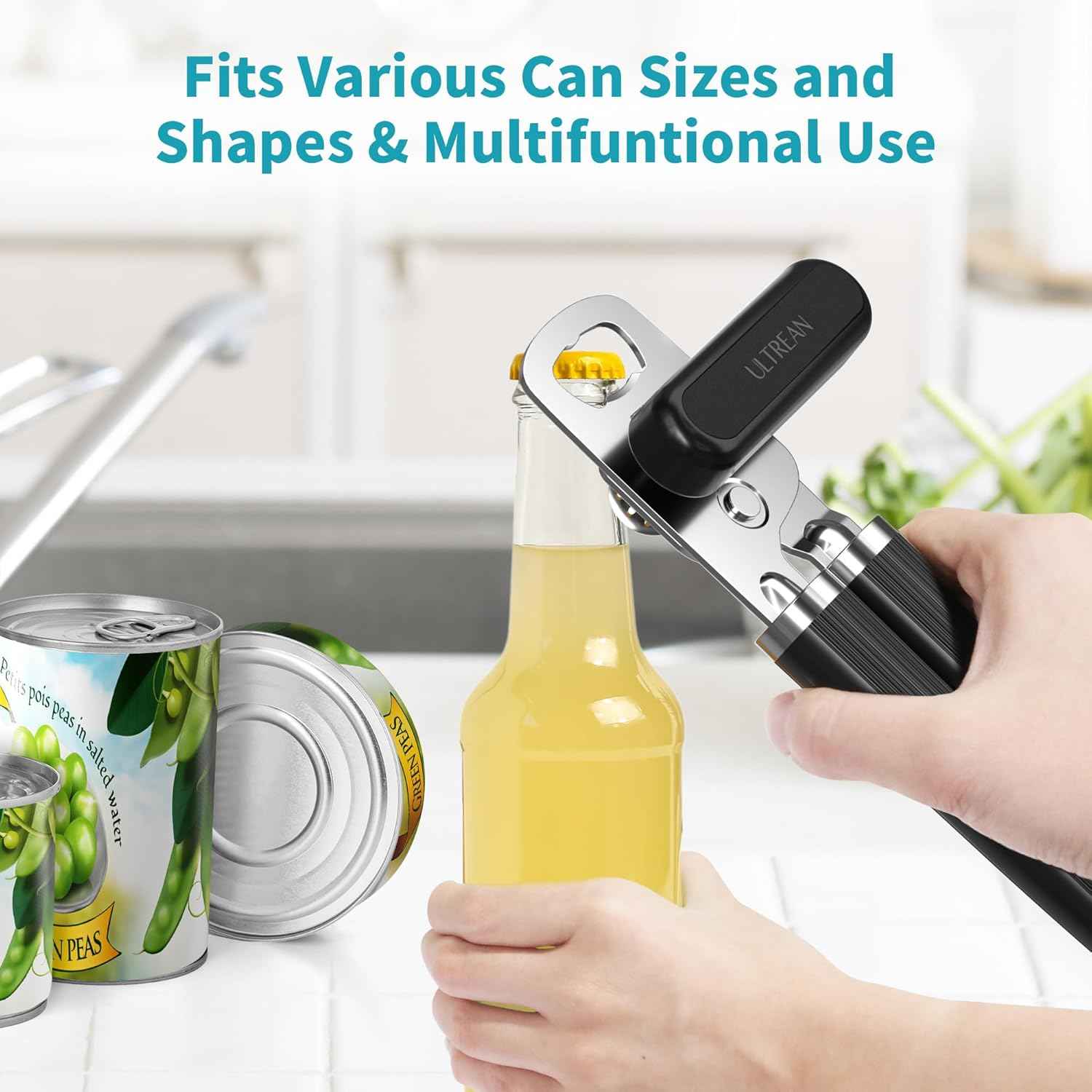 Ultrean Manual Can Opener Bottle Opener, Heavy Duty Stainless Steel Smooth Edge Manual Hand Held Can Opener With Soft Touch Handle, Rust Proof Oversized Handheld Easy Turn Knob (Black)