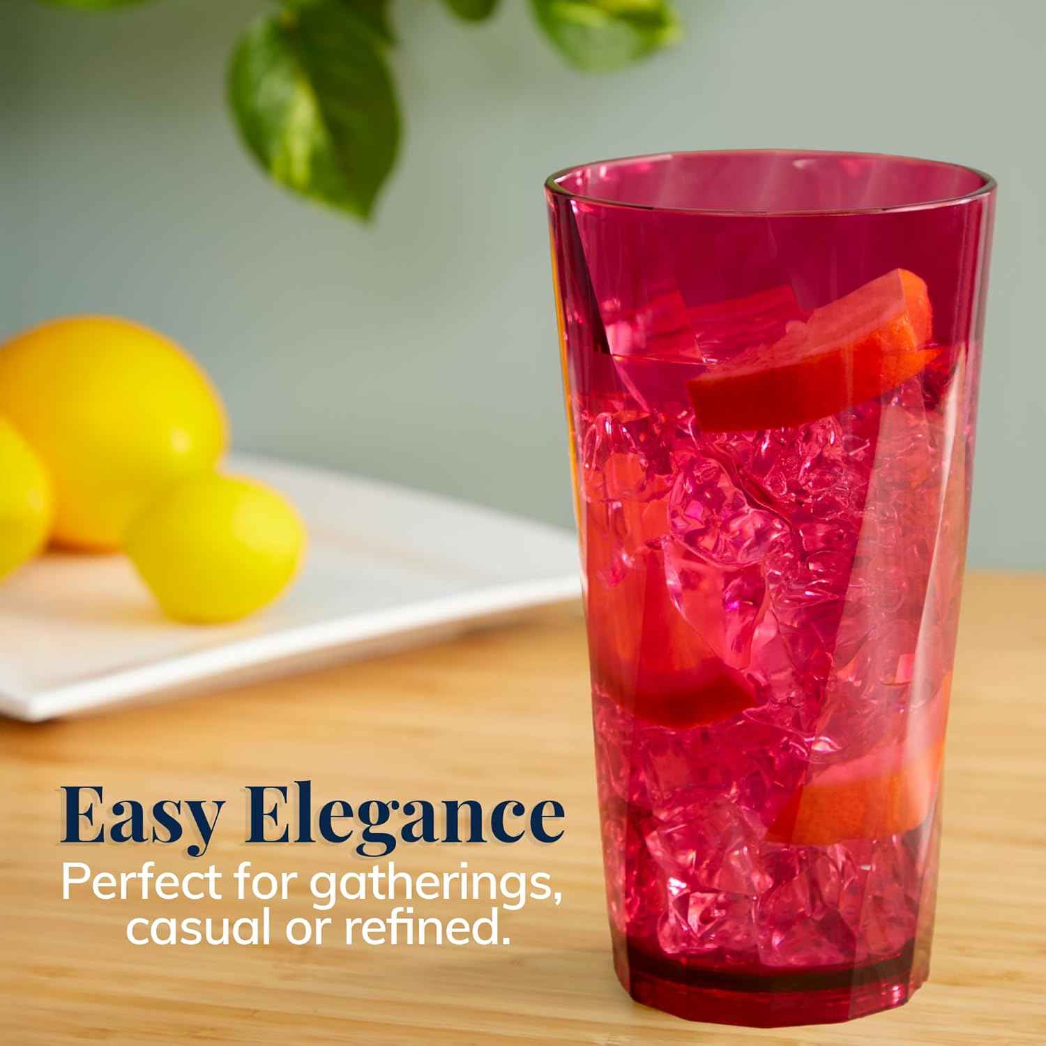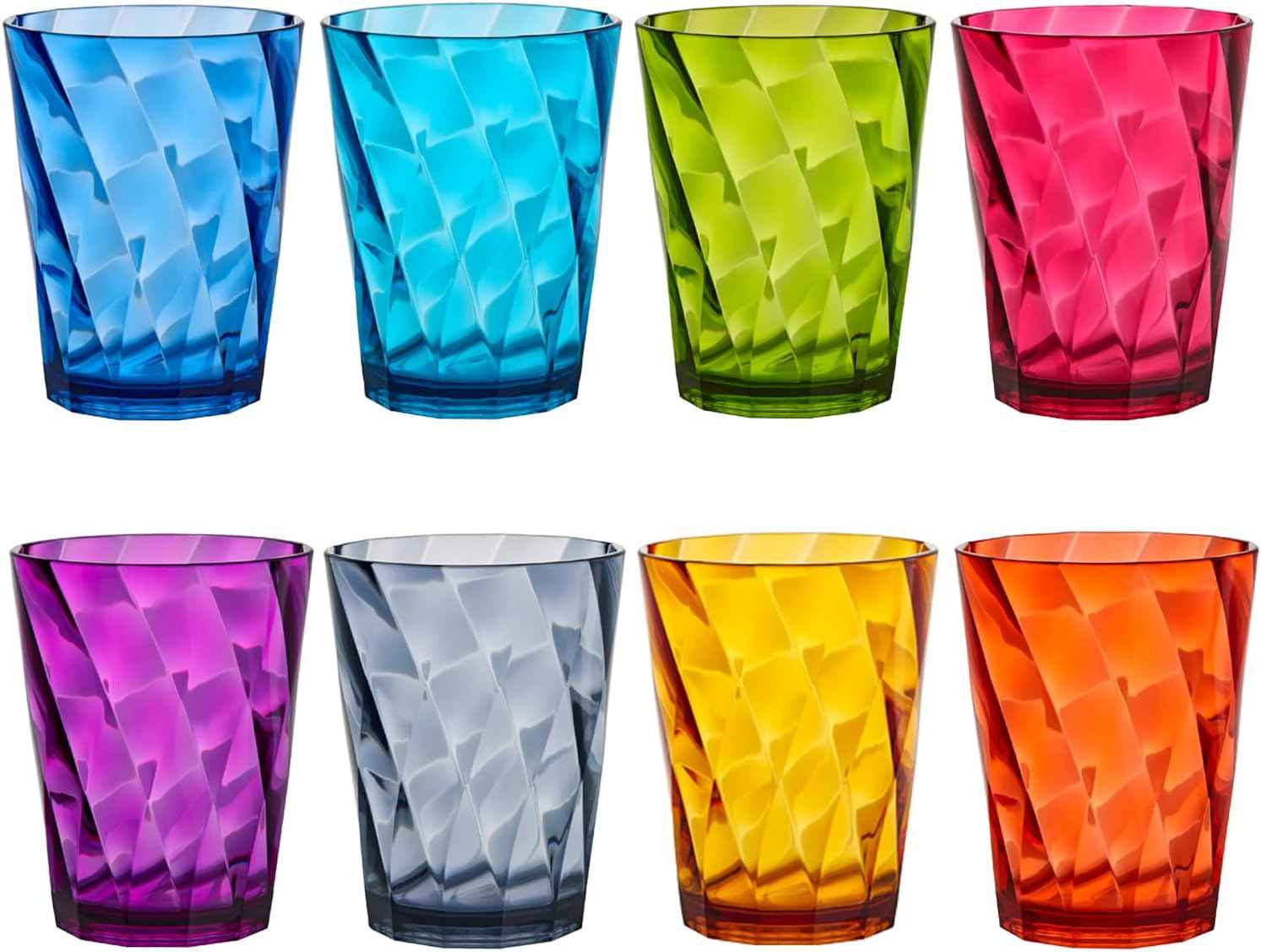 US Acrylic Optix Plastic Reusable Drinking Glasses (Set of 8) 20oz Water Cups in Jewel Tone Colors | BPA-Free Tumblers, Made in USA | Top-Rack Dishwasher Safe