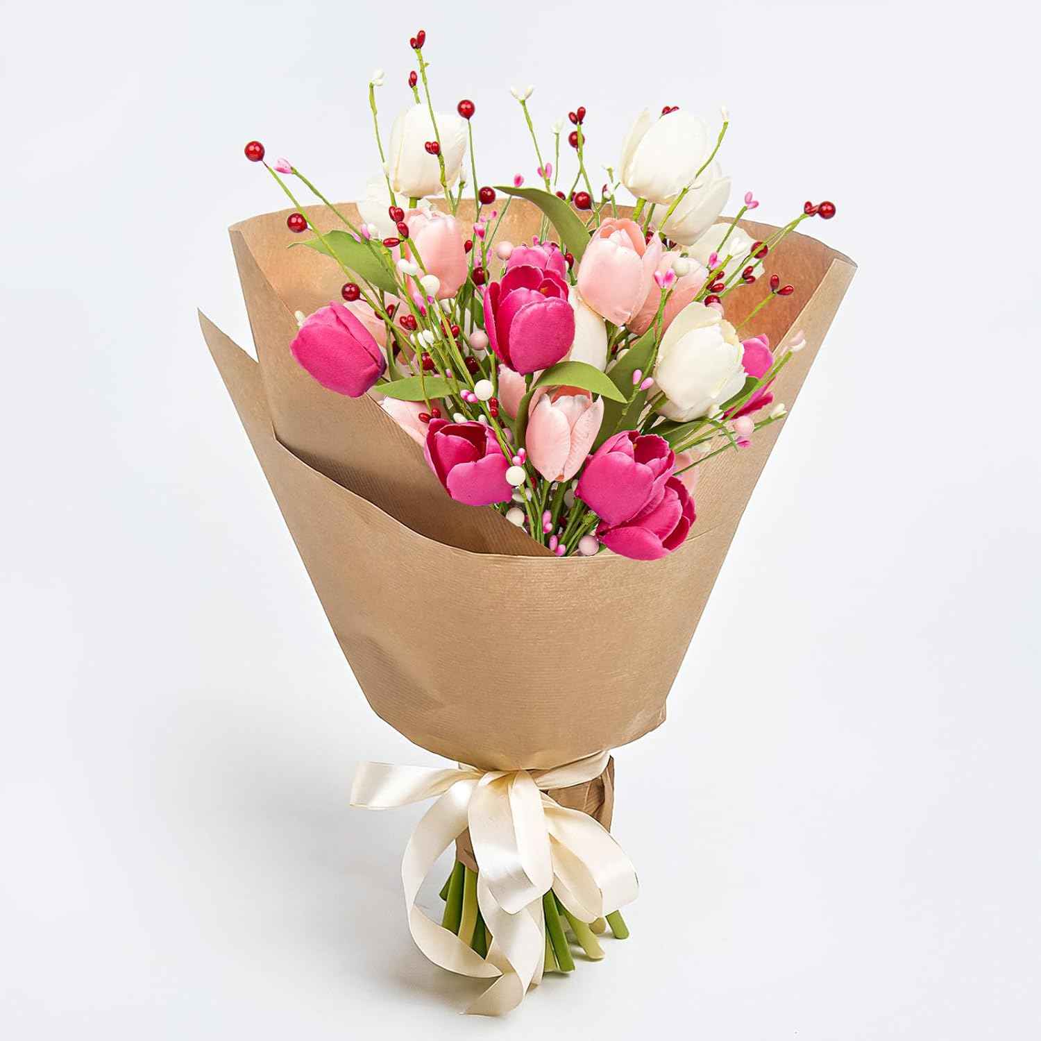● The artificial flowers feature a charming tulip berry design, adding a unique and stylish element to your decorations.