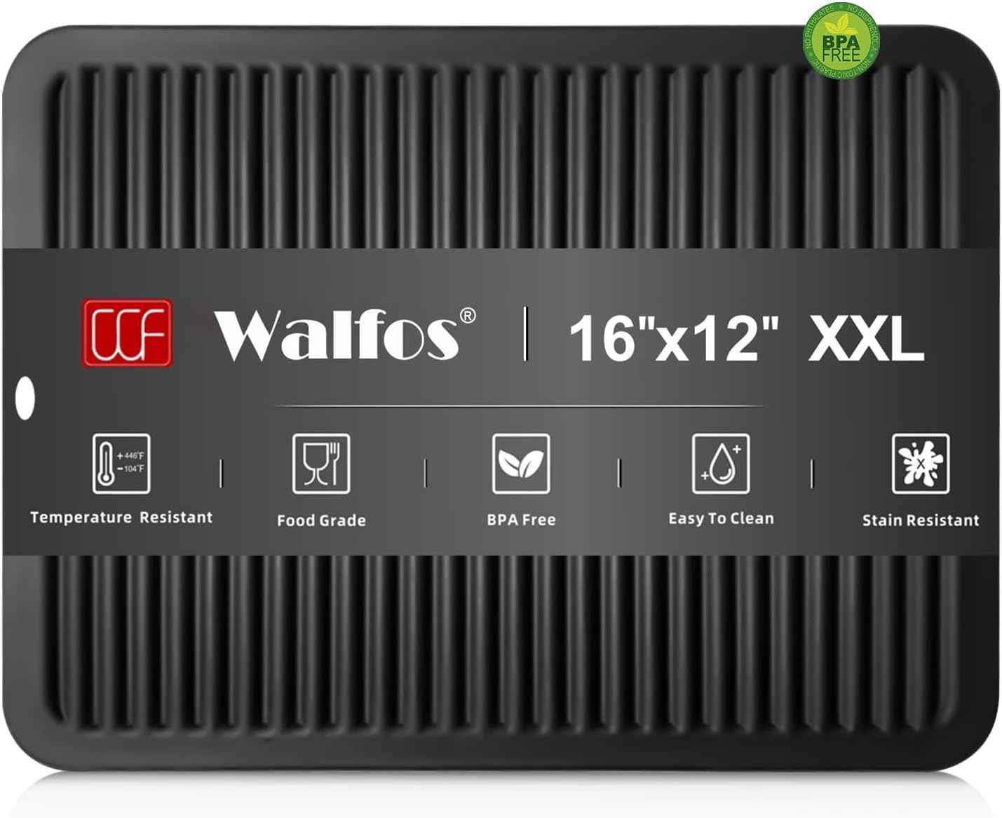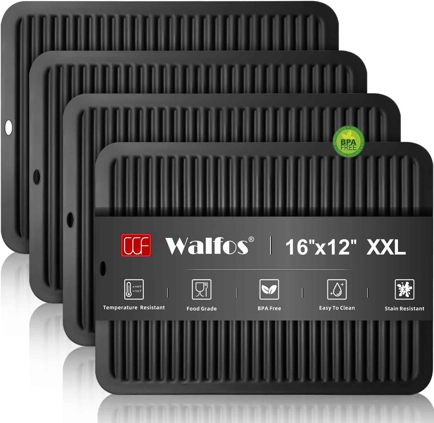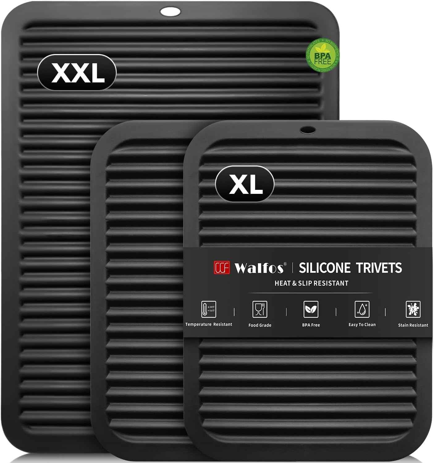 Walfos Silicone Trivet Mats - 4 Heat Resistant Pot Holders, Multipurpose Non-Slip Hot Pads for Kitchen Potholders, Hot Dishers, Jar Opener, Spoon Holder, Food Grade Silicone & BPA Free (Black)