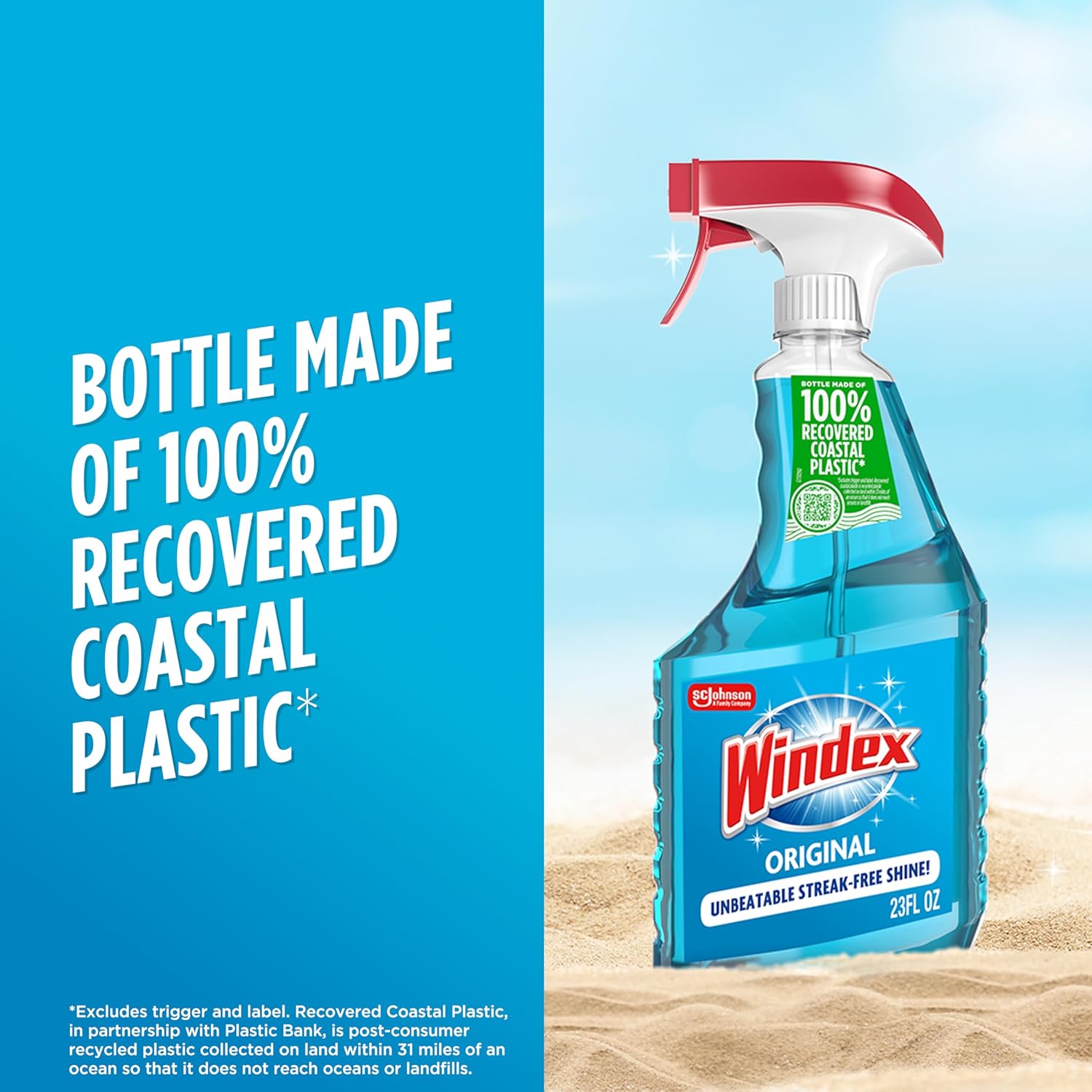 The Windex Glass and Window Cleaner Spray delivers a reliable, streak-free shine on glass, mirrors, and smooth surfaces throughout the home. Its original blue formula removes fingerprints, water spots, smudges, and everyday dirt, leaving surfaces crystal clear. The 23 fl oz size offers long-lasting use for routine cleaning or quick touch-ups.