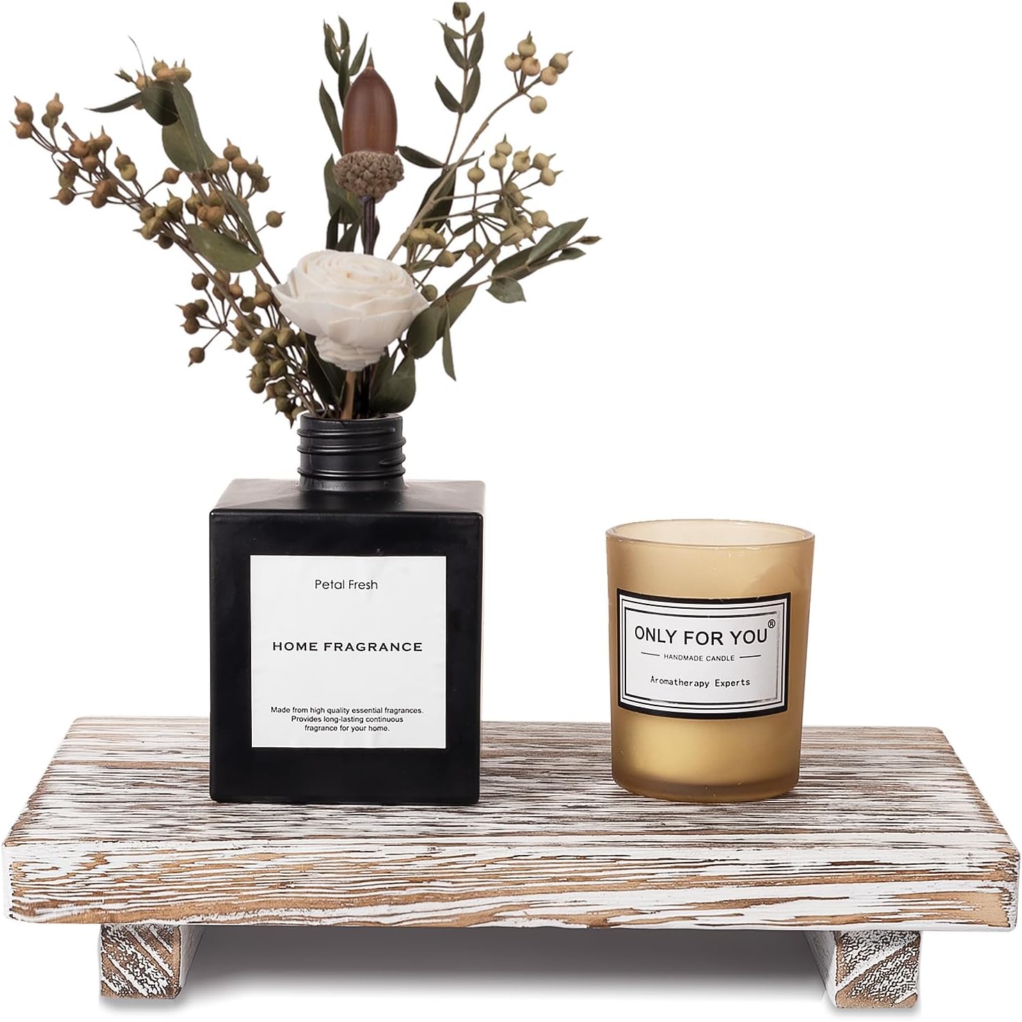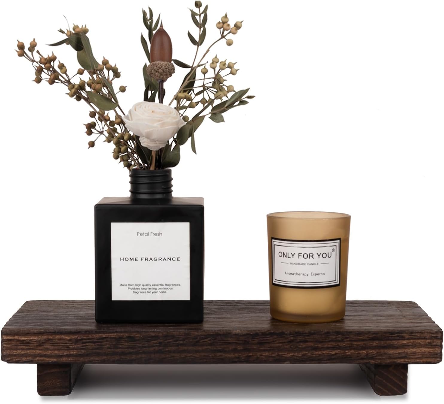 Small Wood Tray Pedestal Stand – Farmhouse Bathroom & Kitchen Decor Wooden Riser, Soap Dish Holder for Vanity, Counter & Sink (Brown)