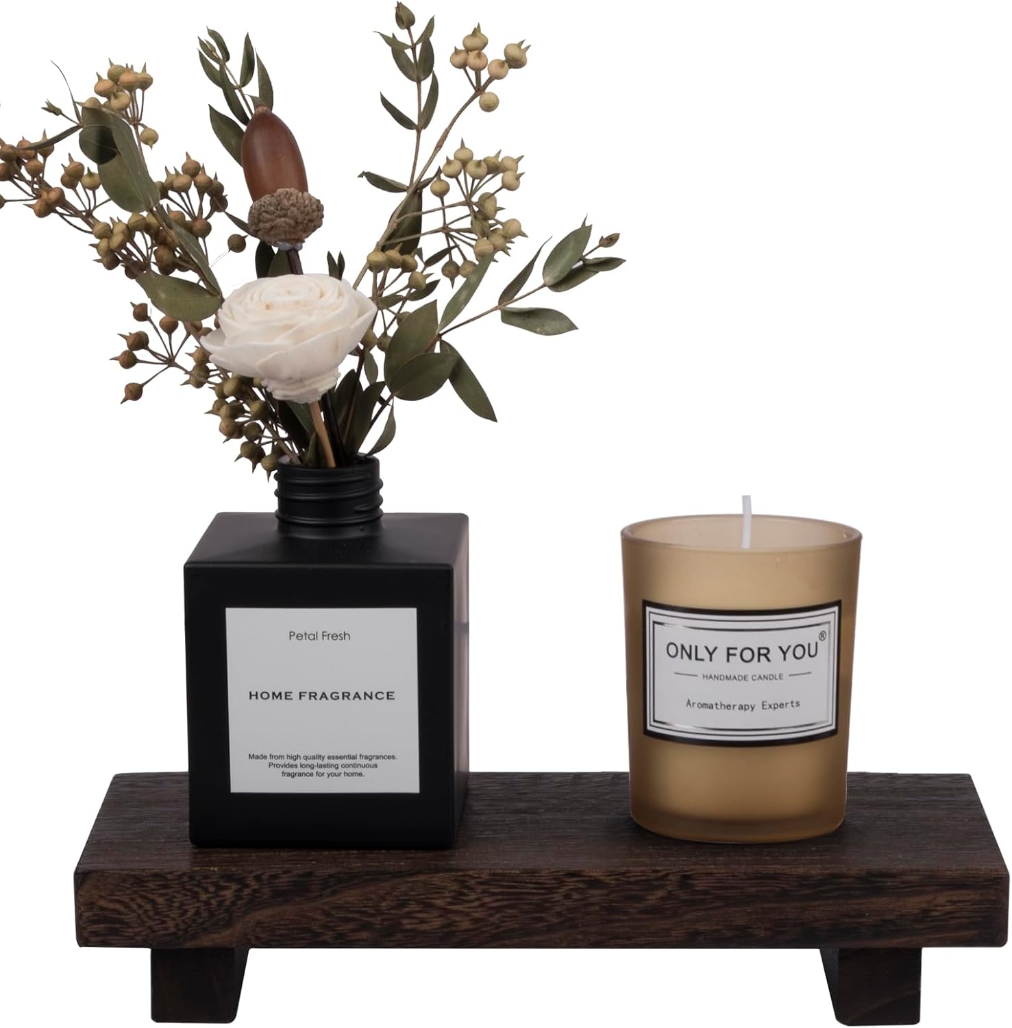 Small Wood Tray Pedestal Stand Farmhouse Bathroom Decor Decorative Wooden Riser Kitchen Soap Dish Holder for Vanity, Counter, Sink, Brown - Rayz Mart