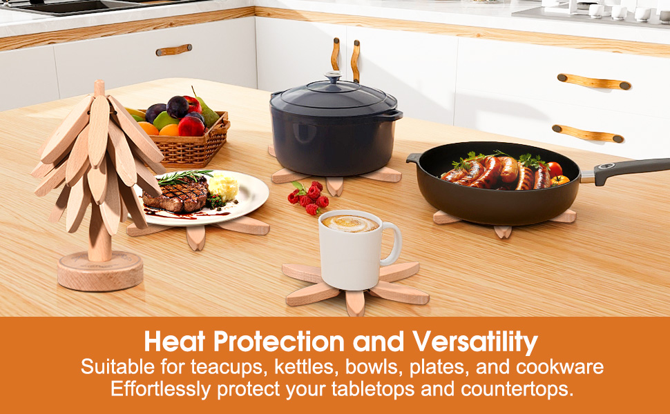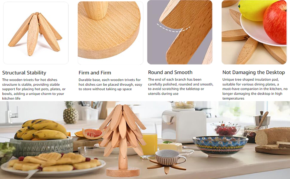 - Wooden Cup Coaster Set,Tree Shape Trivet Set,Tree Coasters- 4 Wooden Trivets + 1 Stand stored for hot Dish/Pot/Bowl/teapot/hot Pot Set (Brown)